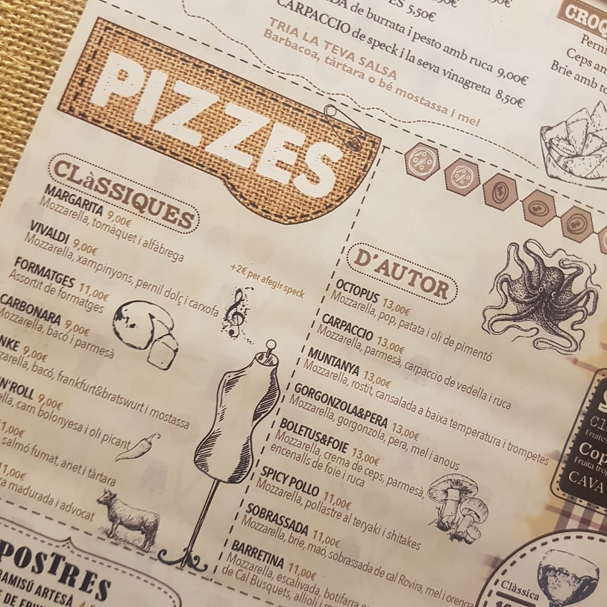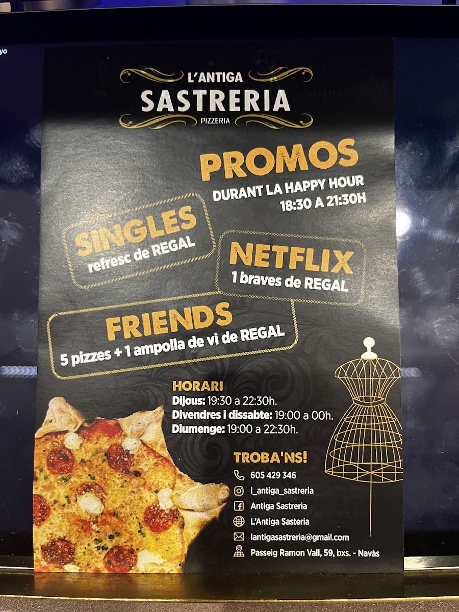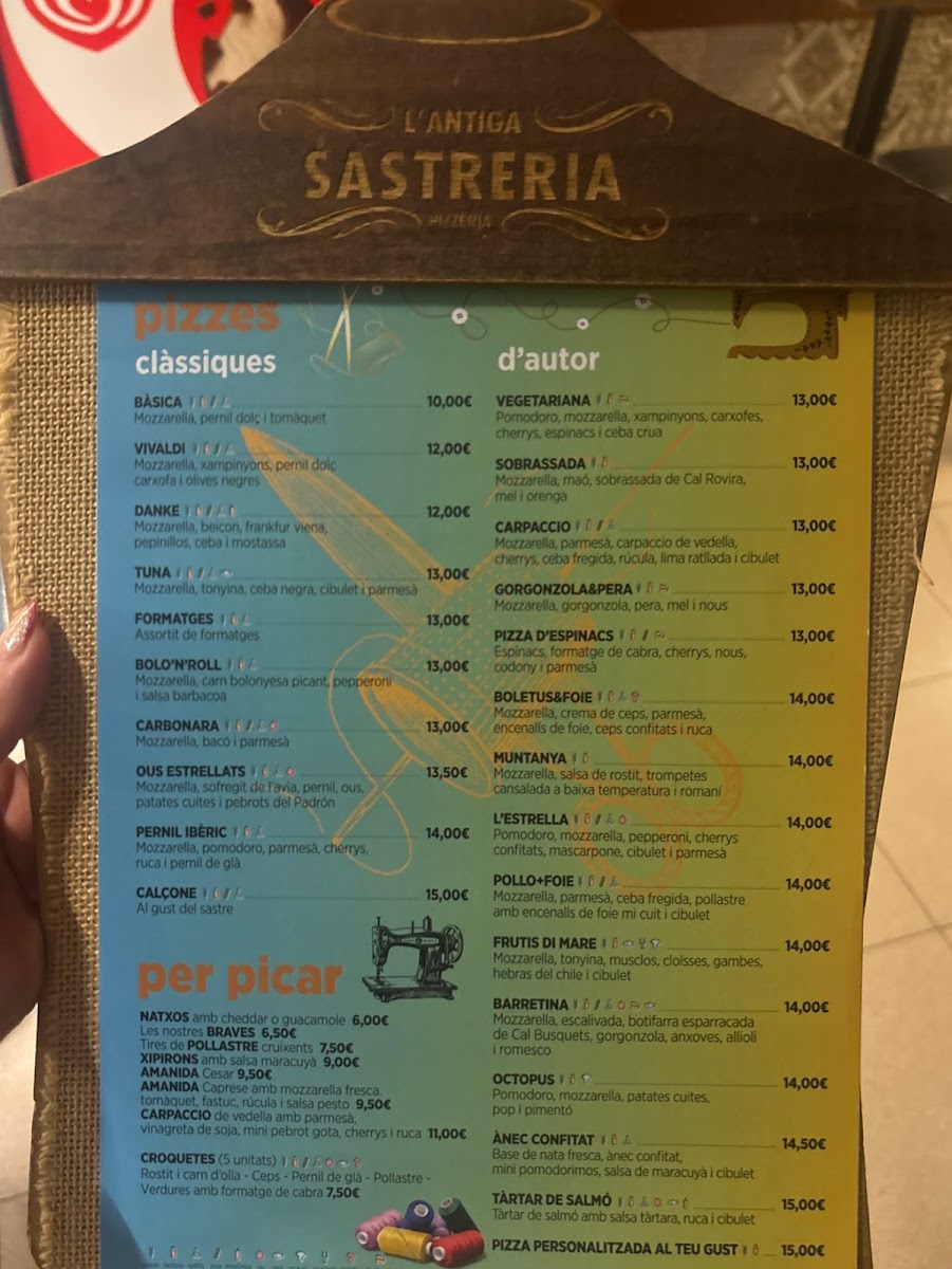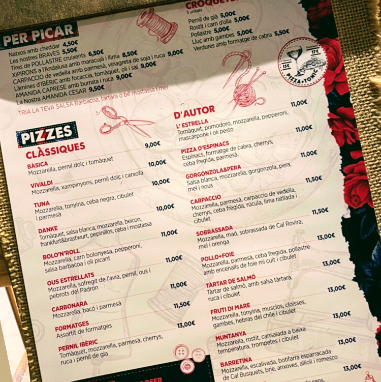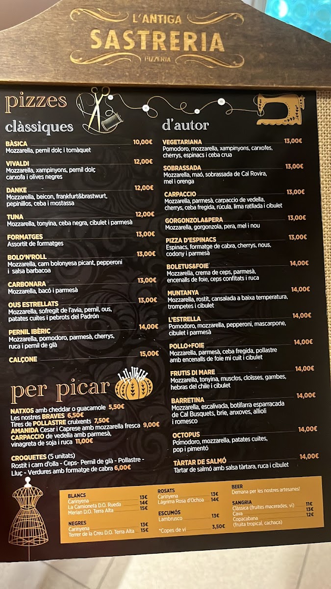 L'antiga Sastreria in Navàs offers a delightful and diverse menu that effortlessly blends traditional flavors with creative twists. A must-try is the Patates Braves, a classic Spanish tapa with a perfect balance of crispy, golden potatoes and a spicy, tangy sauce that leaves a lasting impression. For pizza lovers, the Pizza de Gorgonzola I Pera is an exceptional choice, with the bold, creamy gorgonzola paired beautifully with the sweetness of ripe pears, creating a harmonious contrast of flavors. Another standout on the menu is the Pizza Xuxes, which is both a feast for the eyes and the palate, offering a delicious combination of toppings that make each bite a new experience. The variety of dishes, from comforting tapas to innovative pizzas, ensures that there’s something for everyone at L'antiga Sastreria. The menu strikes a perfect balance between tradition and innovation, offering both familiar favorites and adventurous new options. Whether you’re visiting for a casual meal or a more indulgent experience, L'antiga Sastreria delivers on both taste and quality.